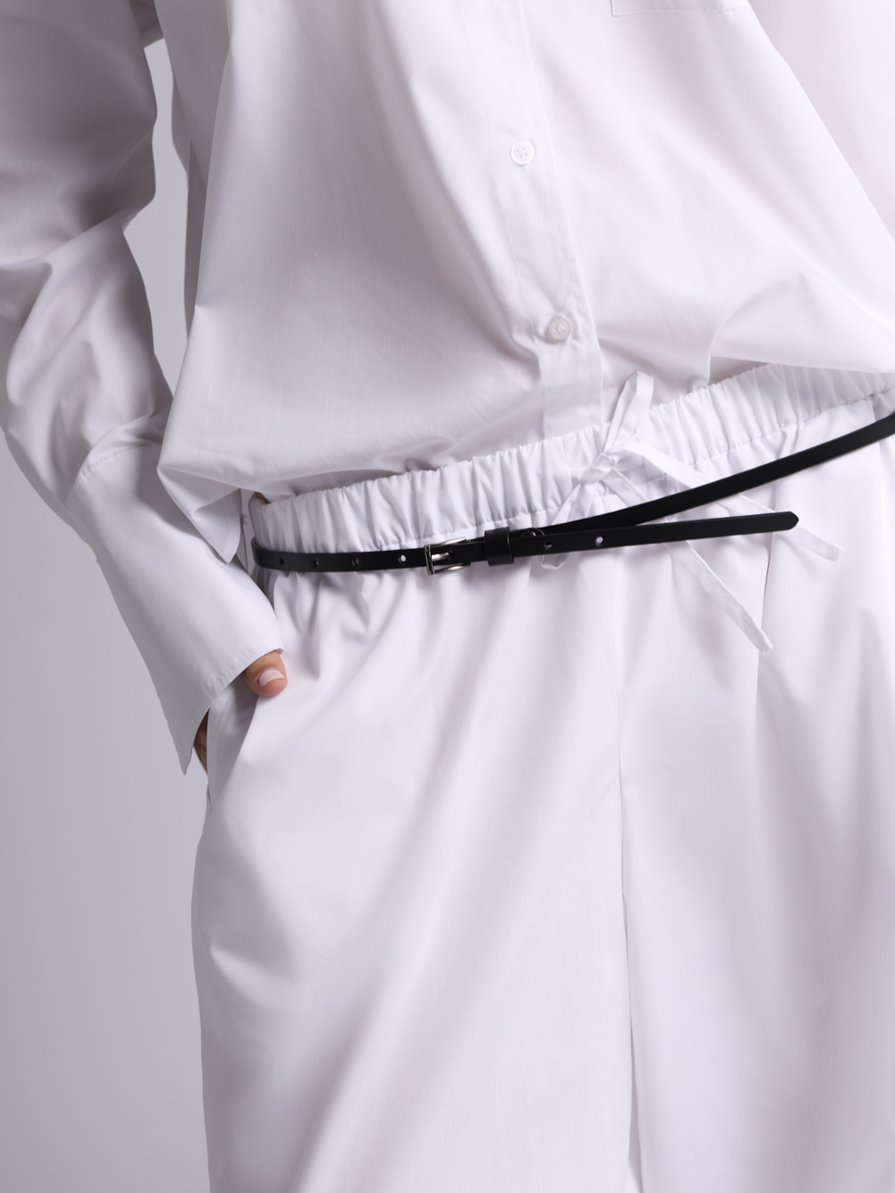Изделие из хлопковой ткани комфортно носить даже в жаркий день. Низкая посадка придает брюкам расслабленный вид, вдохновленный эстетикой 2000-х. Модель подойдет на все случаи жизни и будет выглядеть эффектно, как с каблуками, так и с балетками!