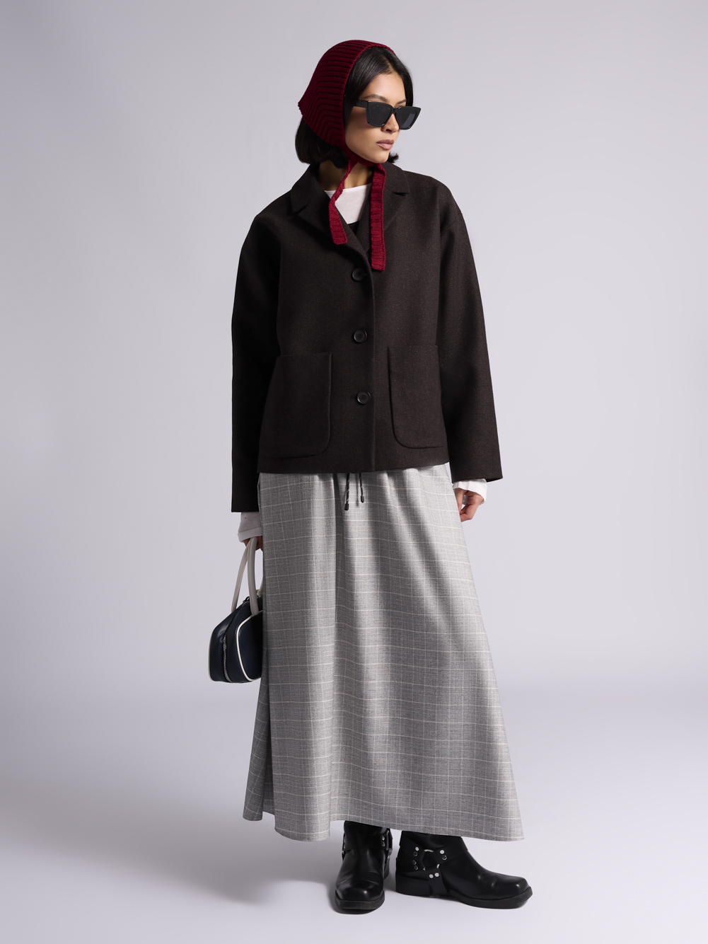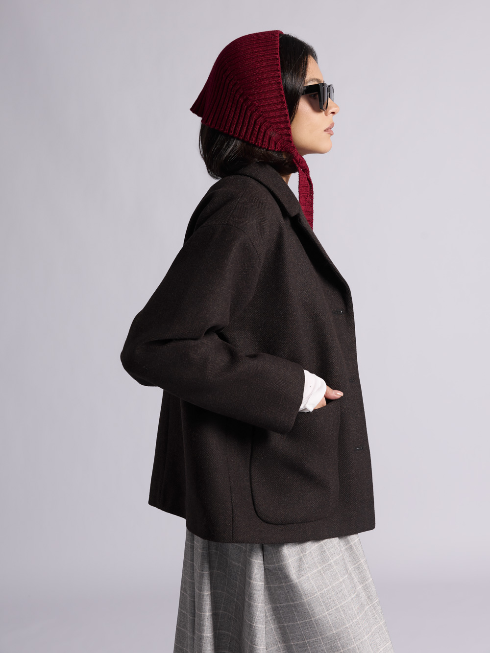 Пальто-пиджак: О032-60 (Елочка темно-коричневая)