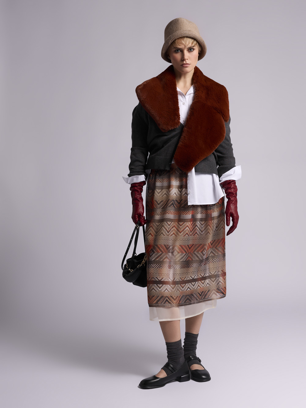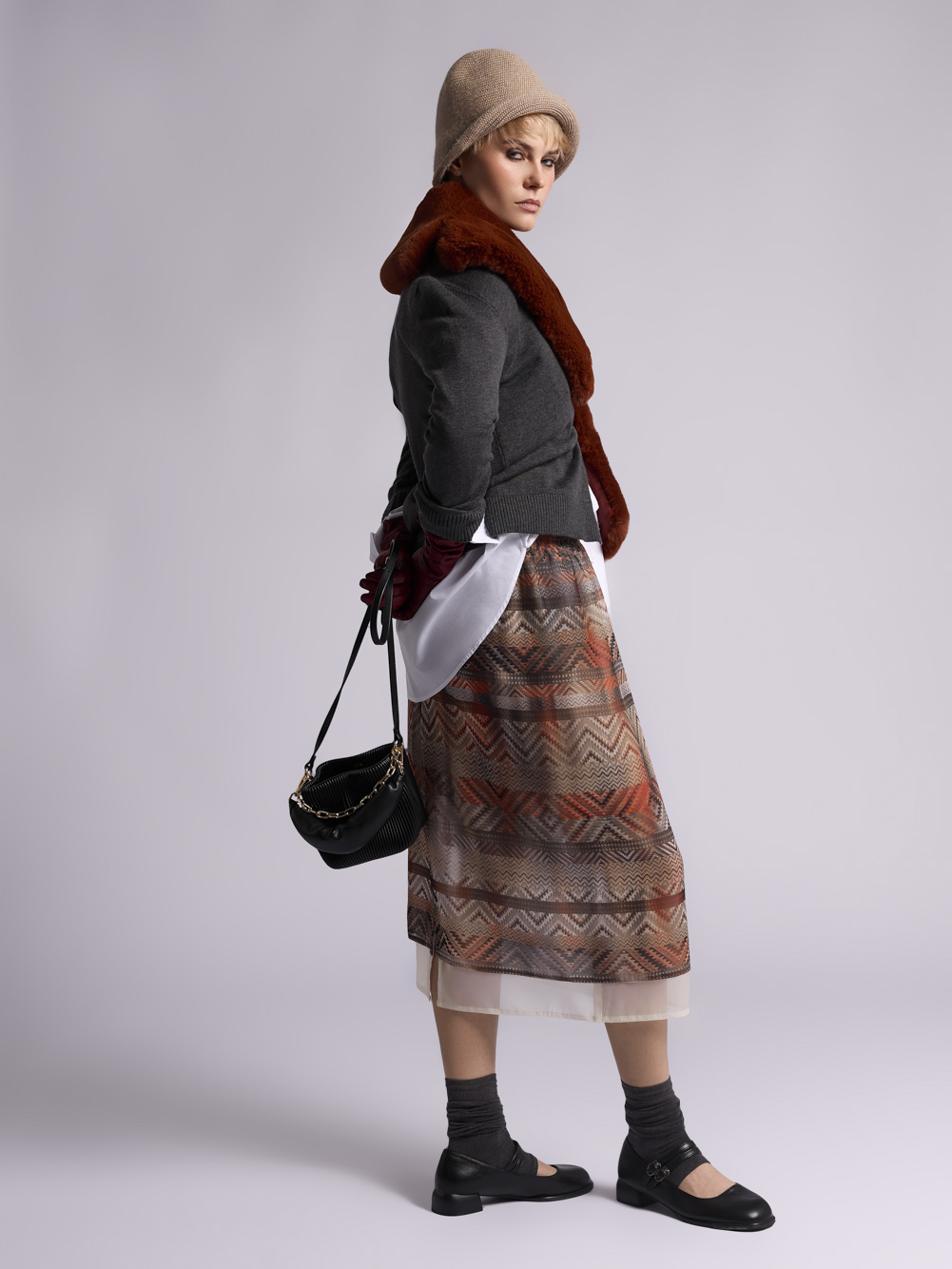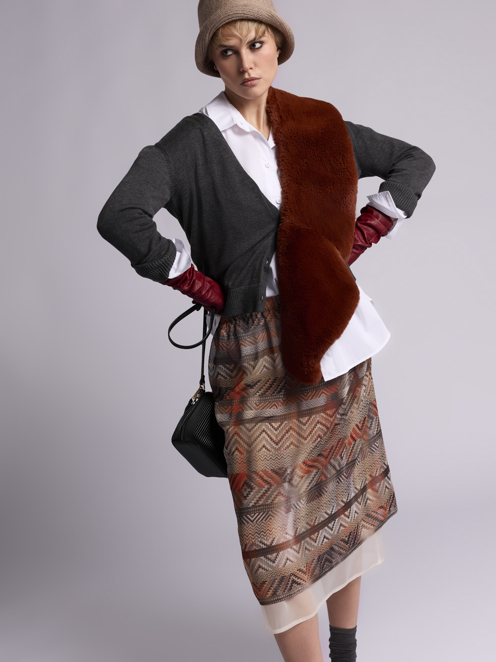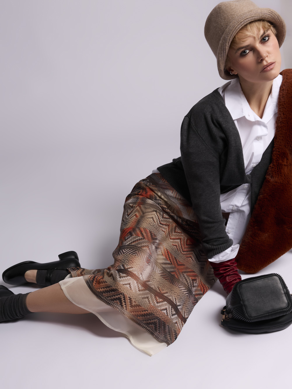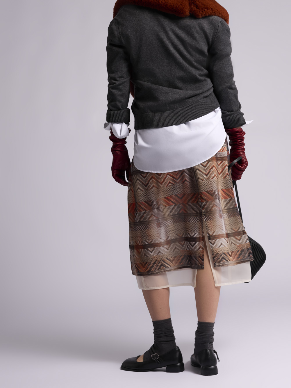 Юбка: Ю006-75 (Бежево-оранжевый принт)